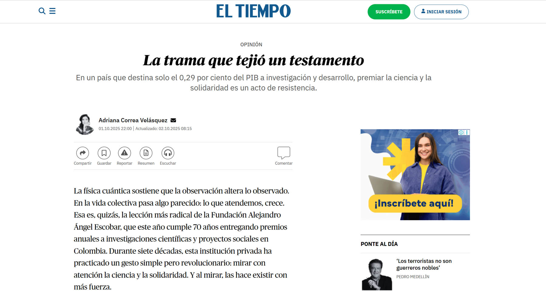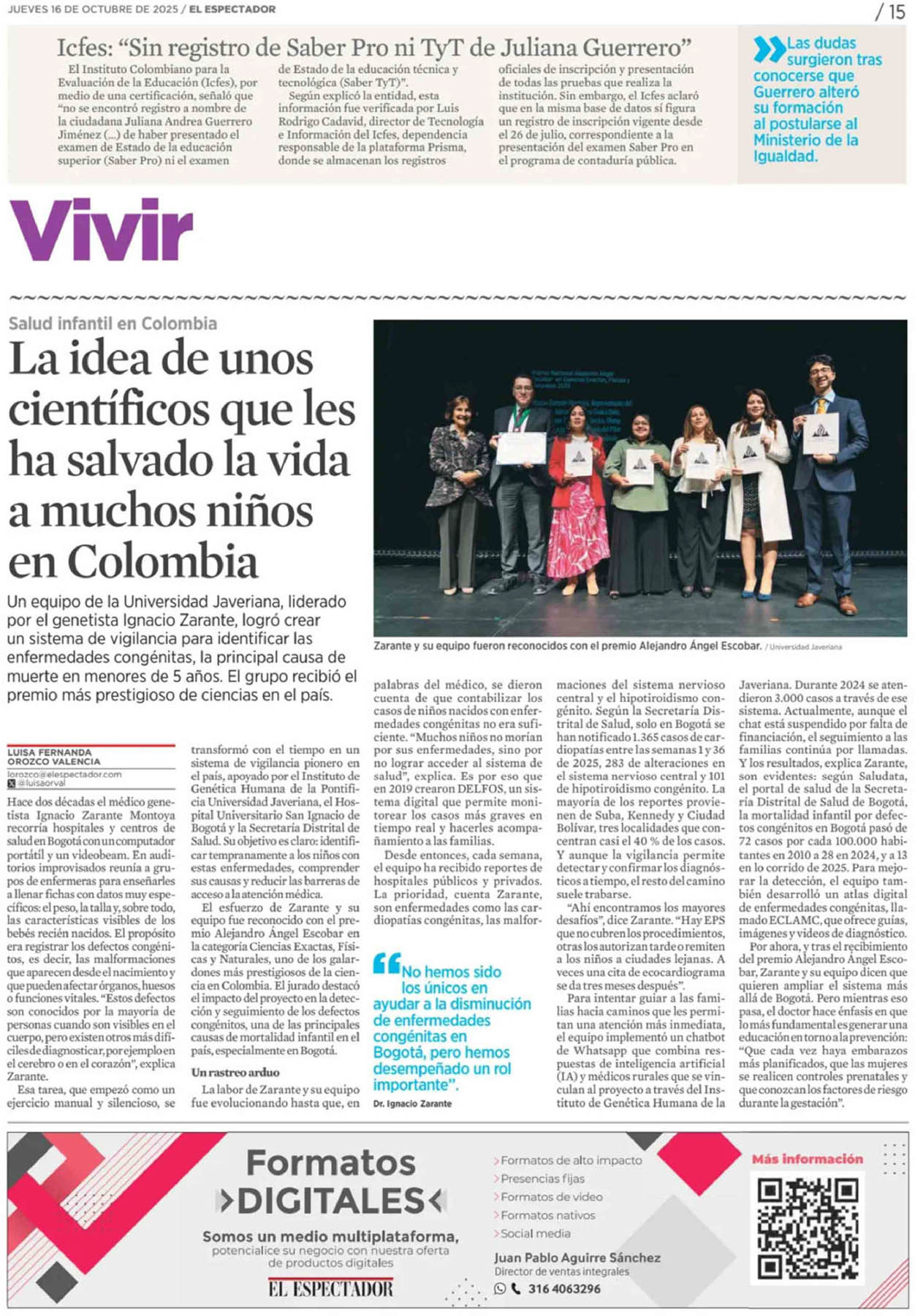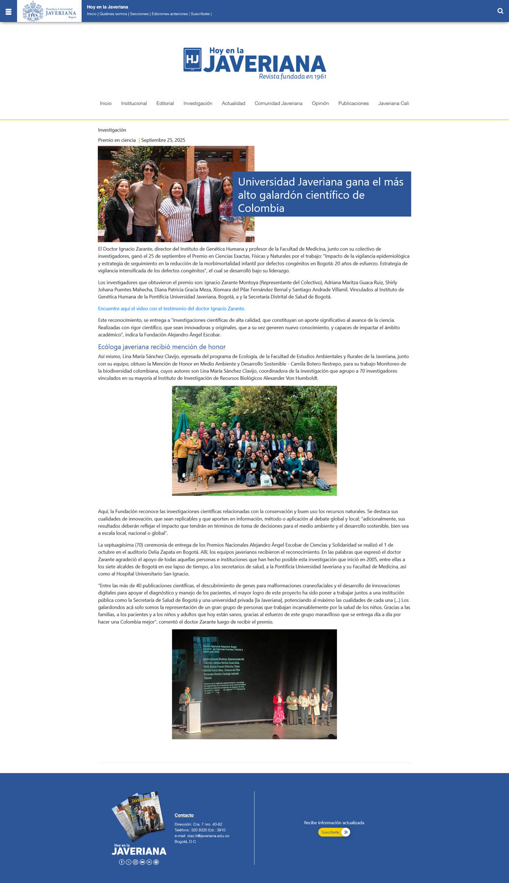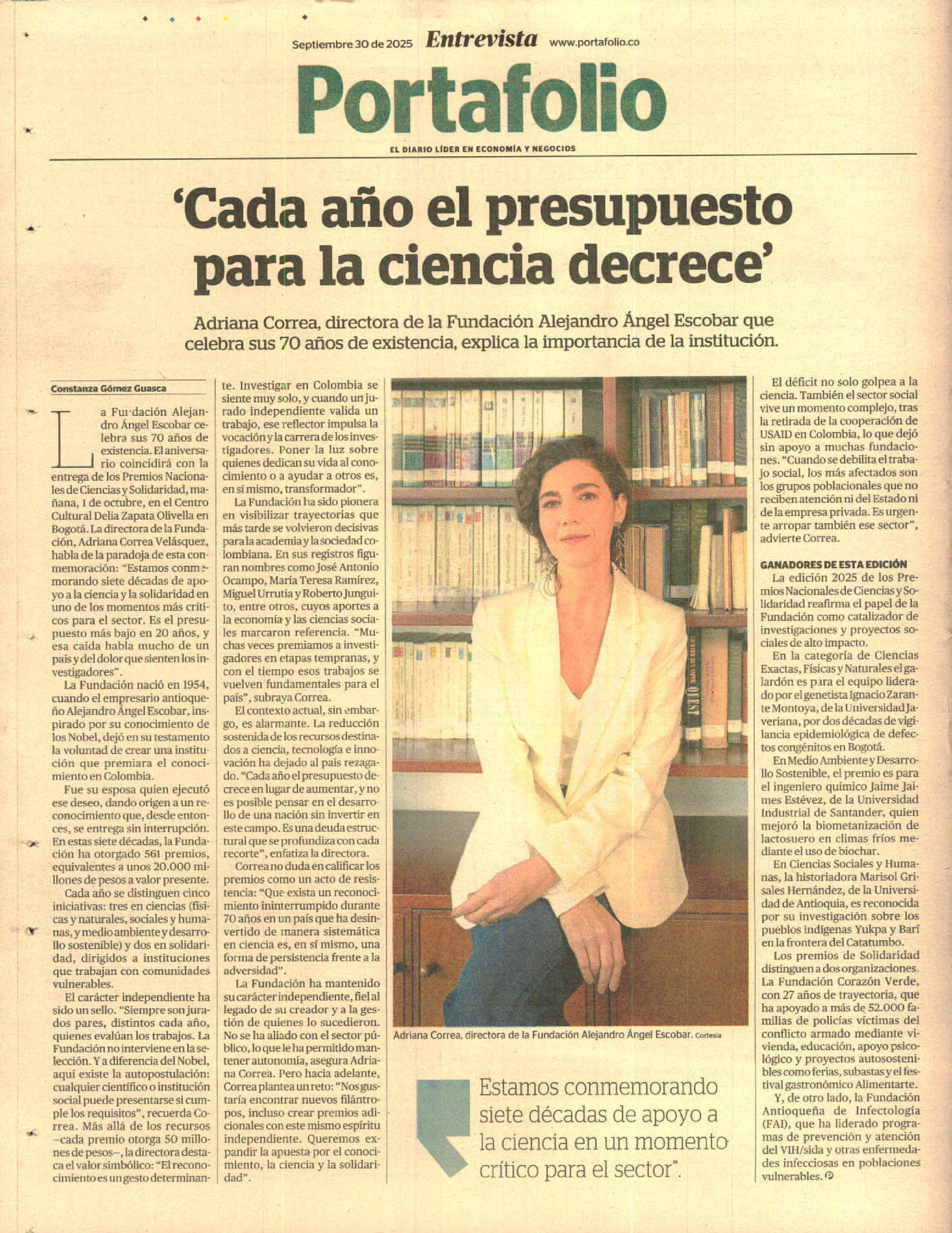 Este año alcanzamos una destacada presencia en medios nacionales, con publicaciones que no solo celebraron la trayectoria de la institución, sino que reflexionaron sobre su papel como referente en la promoción de la ciencia y la solidaridad en Colombia. La prensa resaltó la pertinencia de apoyar la investigación y el conocimiento en un país que enfrenta grandes desafíos para sostener sus instituciones científicas y solidarias.